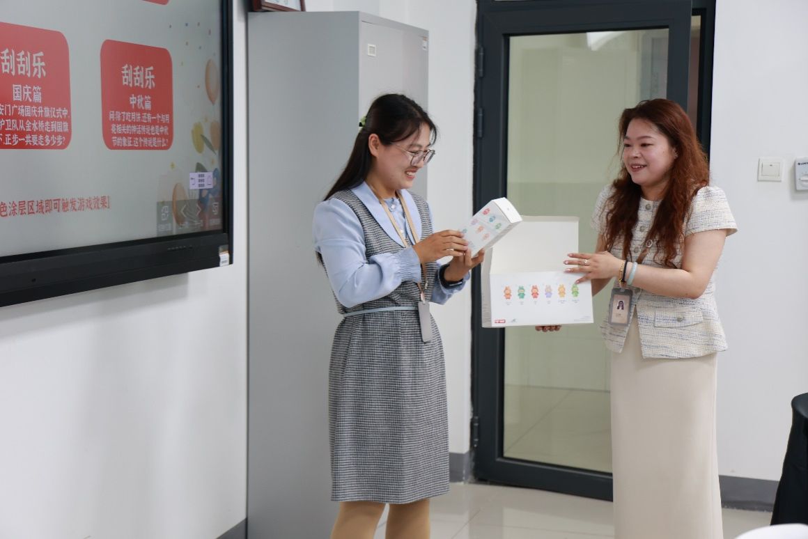 在领导们的祝福声中,生日会进入了互动游戏环节,老师们积极参与。随着一张张刮刮卡被揭开,幸运的老师们收获了精美的小礼物,也收获了满满的惊喜与快乐。