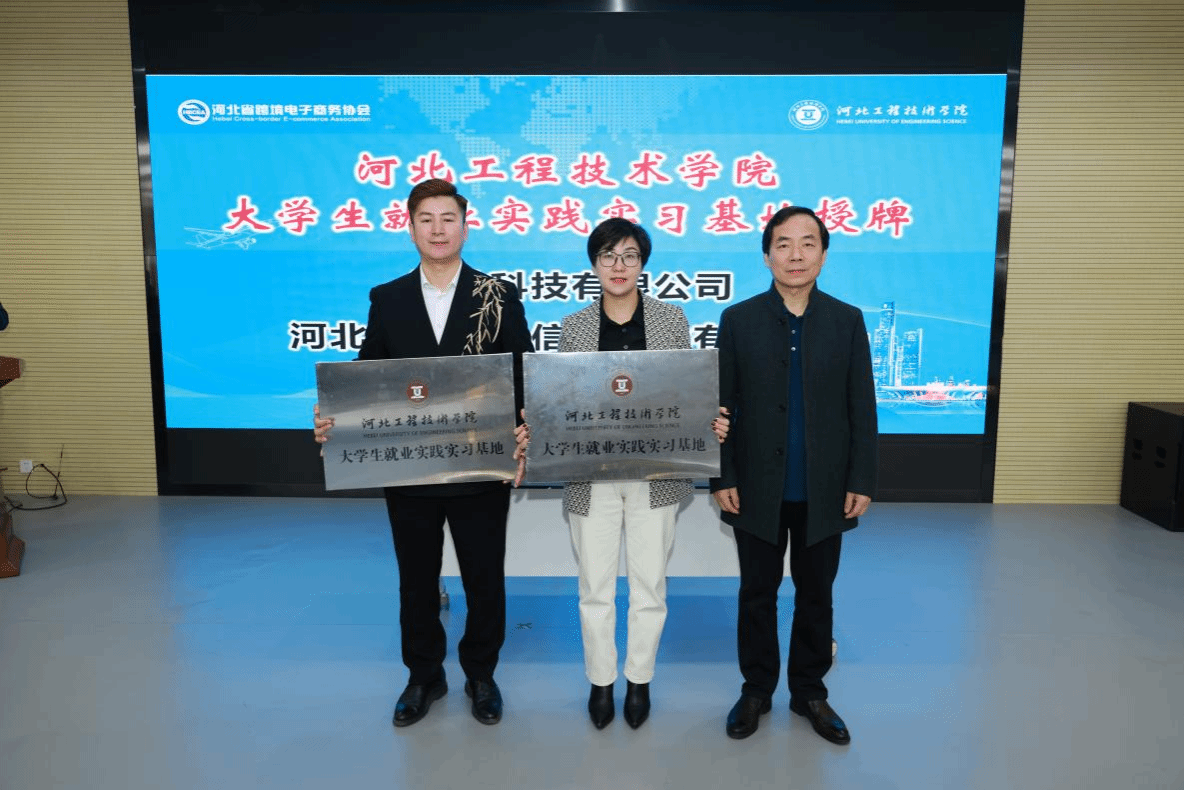 11月22日,河北工程技术学院商学院与鲸驰集团、河北跨海商务信息技术有限公司隆重举行校企合作授牌仪式。河北工程技术学院副校长武勇代表校方,向两家企业正式授予“大学生就业实践实习基地”牌匾,标志着校企协同育人进入新阶段。
