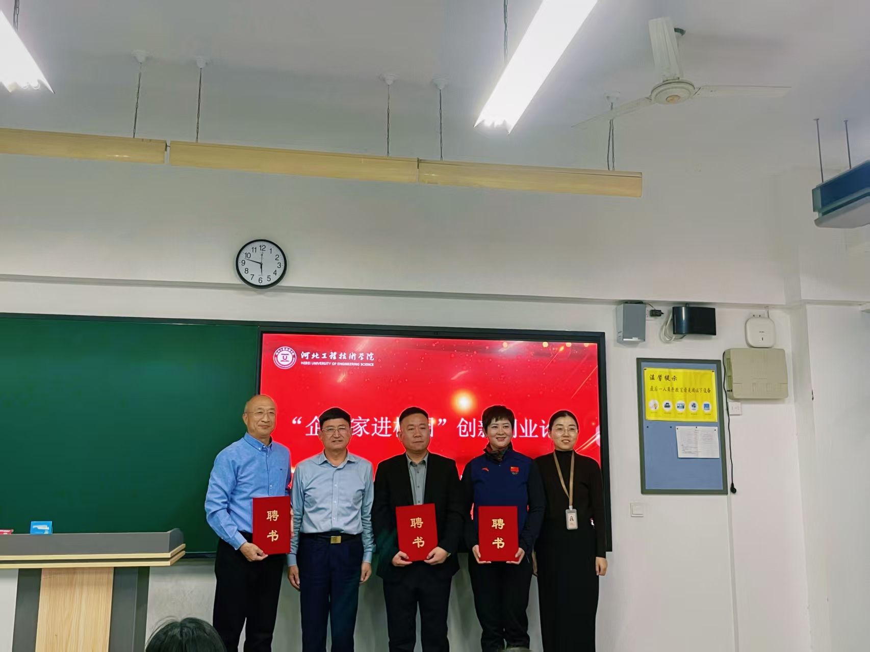 分享结束后,商学院党总支书记、学管副院长刘茜为邸盼盼、王宁、刘彦超、郭兴国颁发了创新创业实践导师聘书。这一仪式标志着商学院正式聘任四位企业家为实践导师,旨在建立长期校企合作机制,为学生提供持续的实战指导与资源支持。