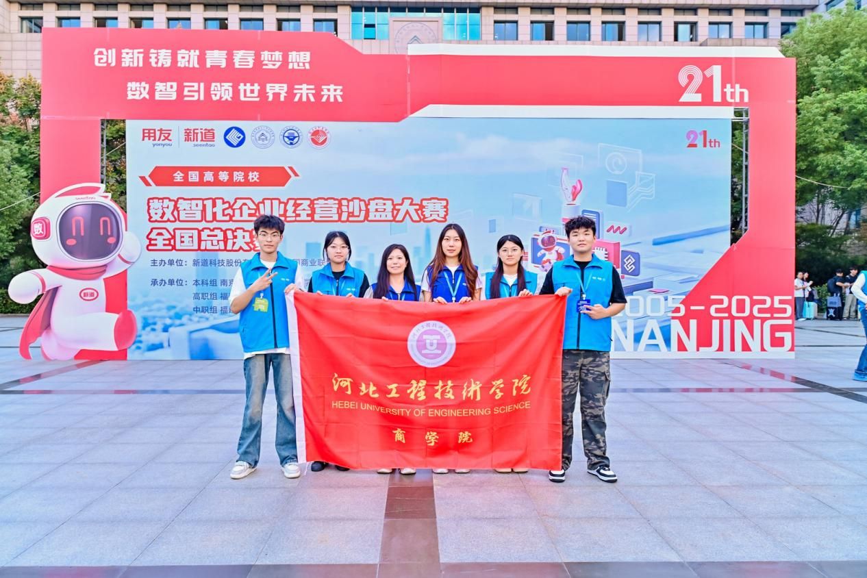 10月19日,全国高等院校数智化企业经营沙盘大赛(本科组)全国总决赛在南京圆满落幕。我校商学院由曹晶晶、代雅雯老师指导,韩文博、张鼎红、严槿、王宇涵同学组成的参赛团队,凭借扎实的专业功底、敏锐的商业思维和卓越的团队协作能力,在117支参赛队伍中脱颖而出,荣获大赛二等奖,创造了该项赛事的最好成绩!