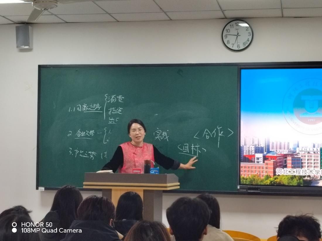 活动在河北工程技术学院6号教学楼商学院306和405教室举行,解晓璇总经理结合自身二十年的外贸工作经验、丰富的创业经历和企业经营管理实践,剖析了国贸、物流领域的最新发展趋势、人才需求标准以及未来职业发展路径。她通过详实的案例、生动的故事,将课本理论知识与鲜活的商业实践紧密结合,强调了终身学习、创新能力、团队协作等能力在个人职业成长中的关键作用。